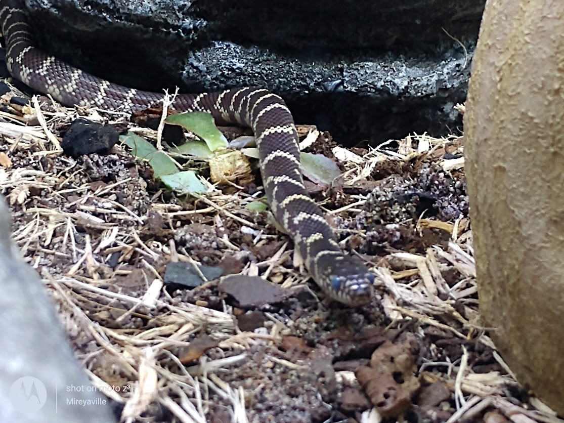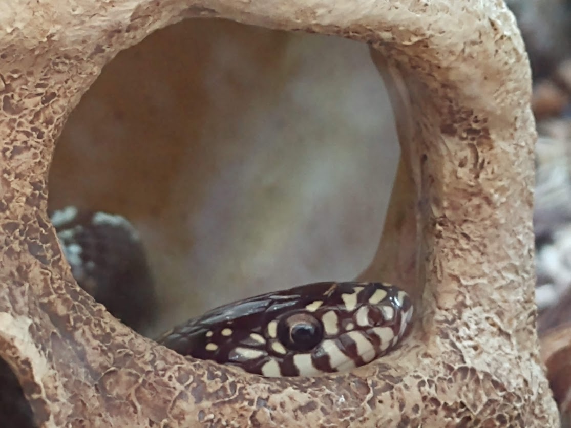 Lady MacBeth is a California King Snake. She is a wonderful snake that enjoys watching TV and keeping an eye on us.